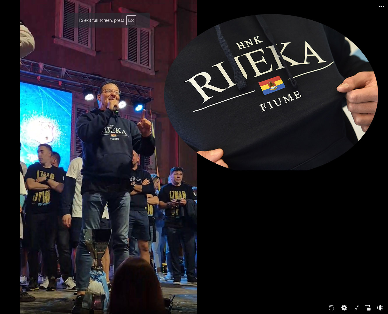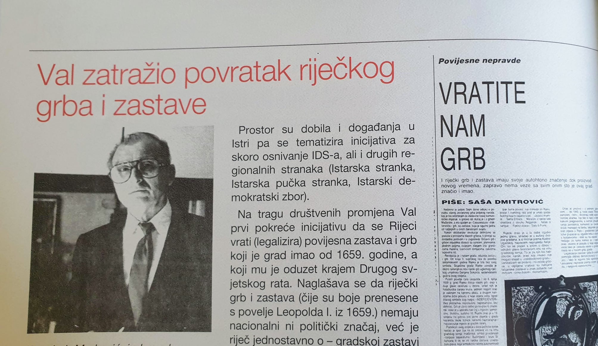 Glavni urednik Novog lista objašnjava nepotpisanom posjetitelju Galerije da je Riječka zastava, zastava Grada Rijeke i da bi uz hrvatsku trebala češće vješat na zgrade! Kakav maestralan odgovor vjerojatno čovjeku koji ne može podnijet ništa riječko.