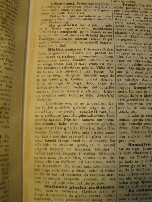 26.11.1900. Evo što je 1900.-te Frano Supilo utemeljitelj Novog lista odnosno Riečkog Novog Lista, odgovorio čitatelju koji je rekao da je riječka zastava autonomaška.