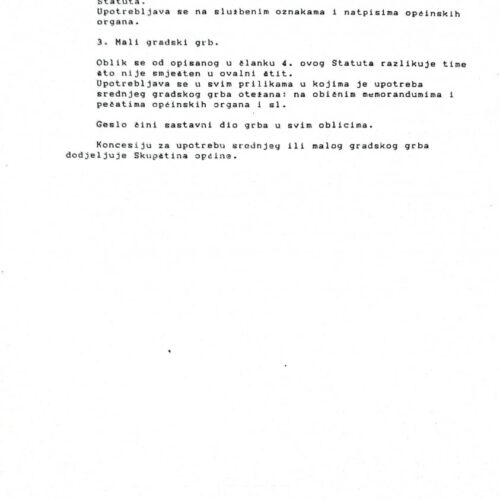 - da se već niz godina upotrebljava, te o javnim svetkovinama ističe, gradski grb sastavljen od triju boja – karmina, zlatno-žute i ultramarina – položenih vodoravno, boja uzetih s izvornoga grba što se čuva u arhivu;