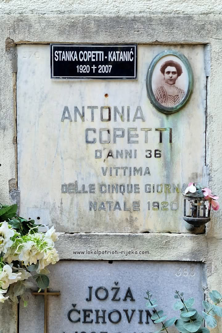 Riječka obitelj Copetti baš nikada nije imala sreće…. Jedna od pet CIVILNIH žrtvi Riječkog krvavog Božića, 1920. bila je Antonia Copetti. (fotografija i tekst Ronald F.)