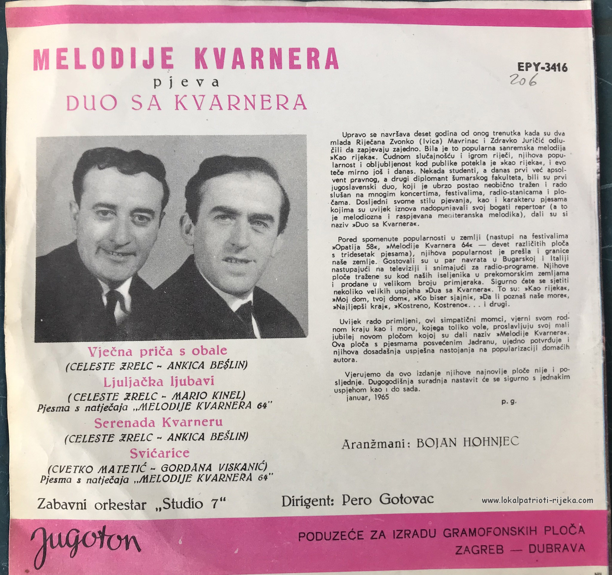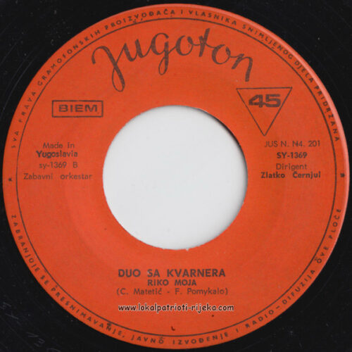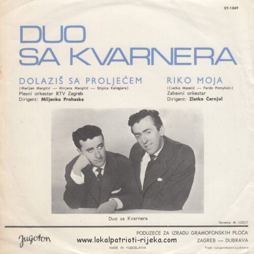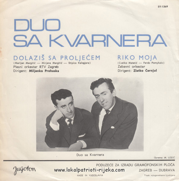 Melodije Kvarnera pjeva duo sa Kvarnera. Na omotu su Riječani. 🙂 S obzirom na granice Općine Rijeka, Riječani Zvonko Mavrinac i Zdravko Juričić, dok Rijeku nisu odlučili teritorijalno smanjit.