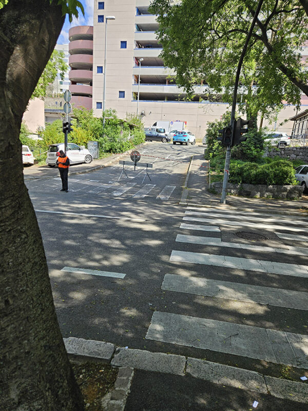 Dionica na Pećinama bila je blokirana od 10 :30 do 13:40. Zabrana je bila za vozila i kod kafića “Teta Roža”.
