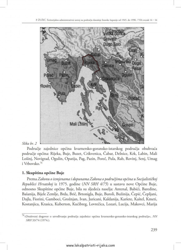 Općina Rijeka i Kotar Rijeka. Općinu Rijeka činile su mjesta Kostrena, Bakar, Viškovo, Jelenje, Čavle, Kraljevica, Klana, Kastav čineći 526, 3 km² površine.