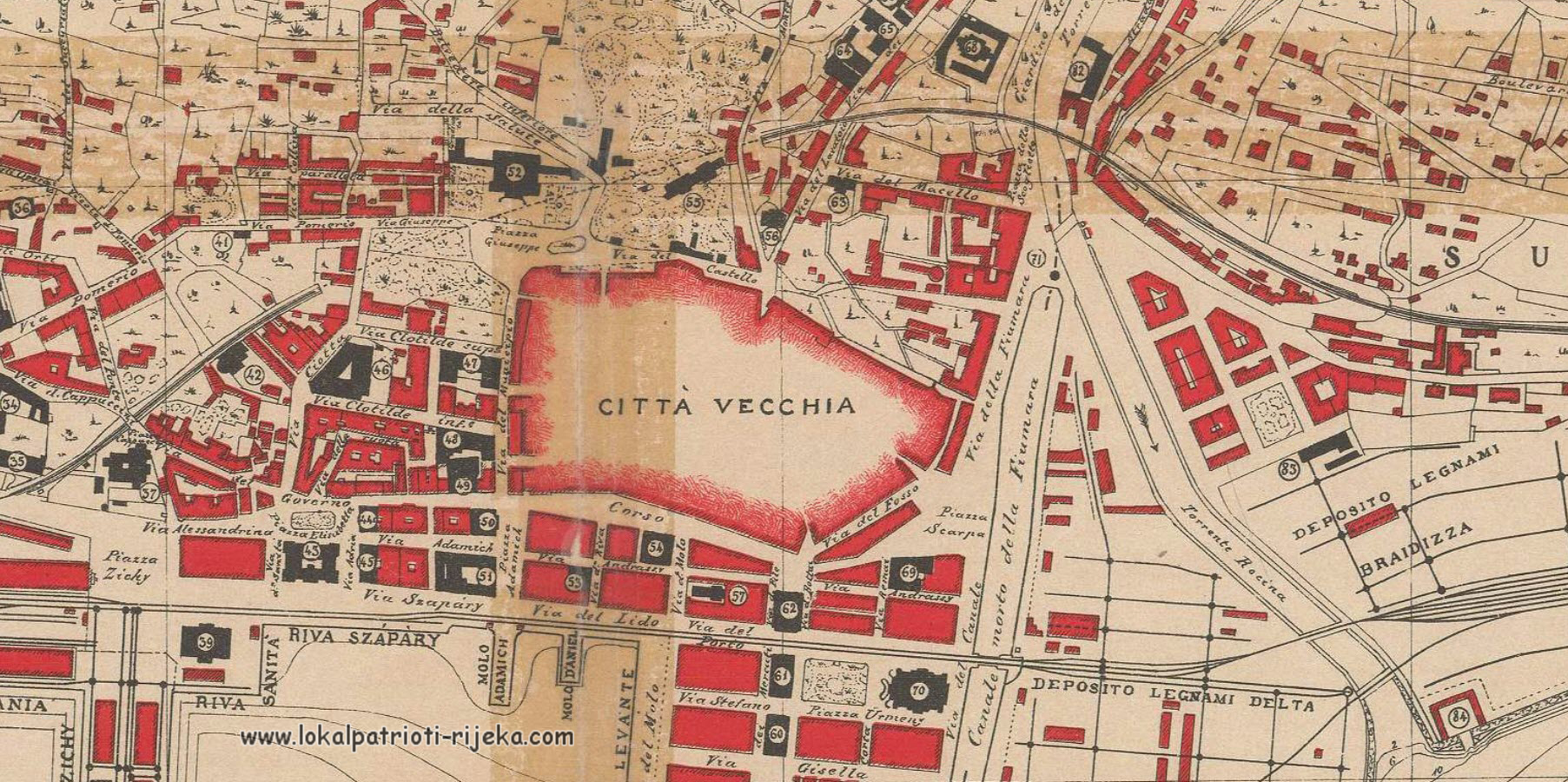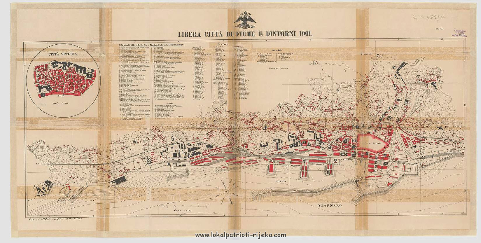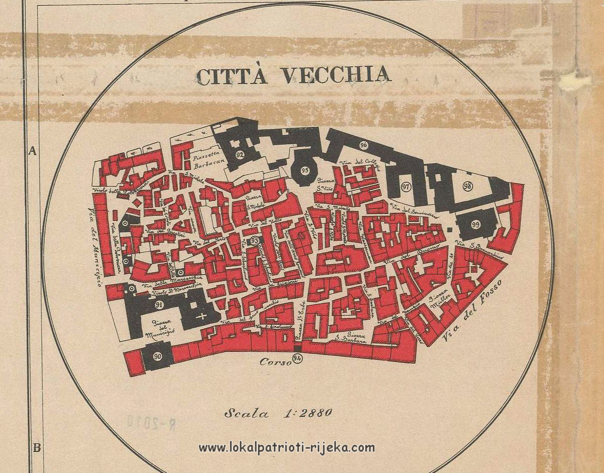 Imamo i izgled riječkog starog grada iz karte “Libera Citta di Fiume e Dintorni” iz 1901.