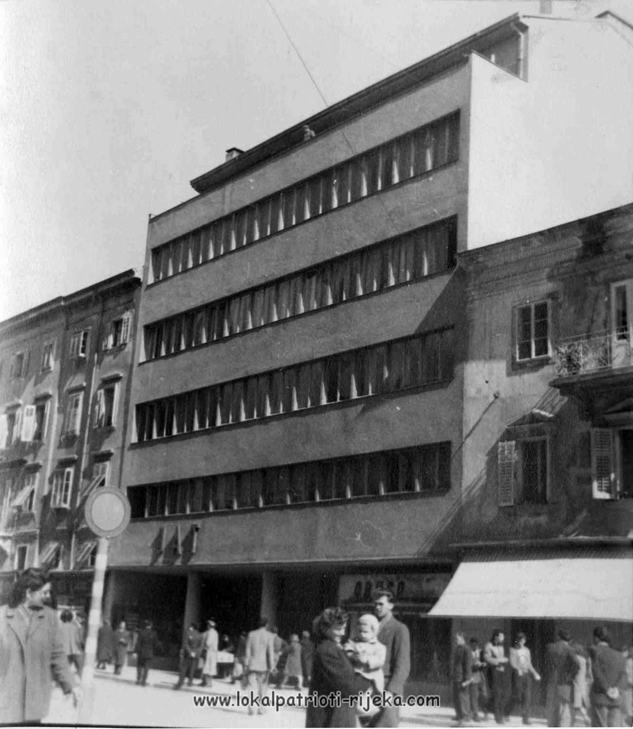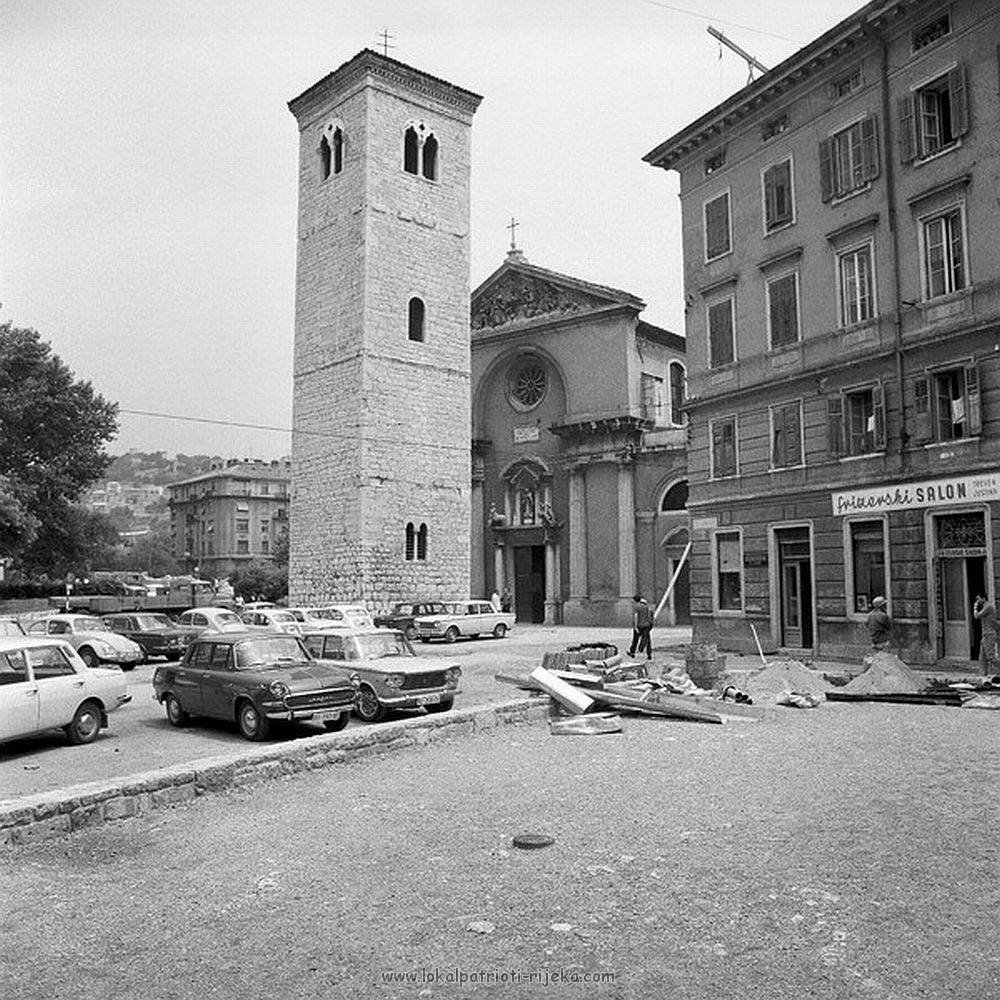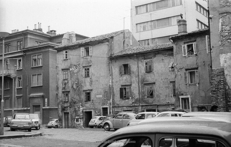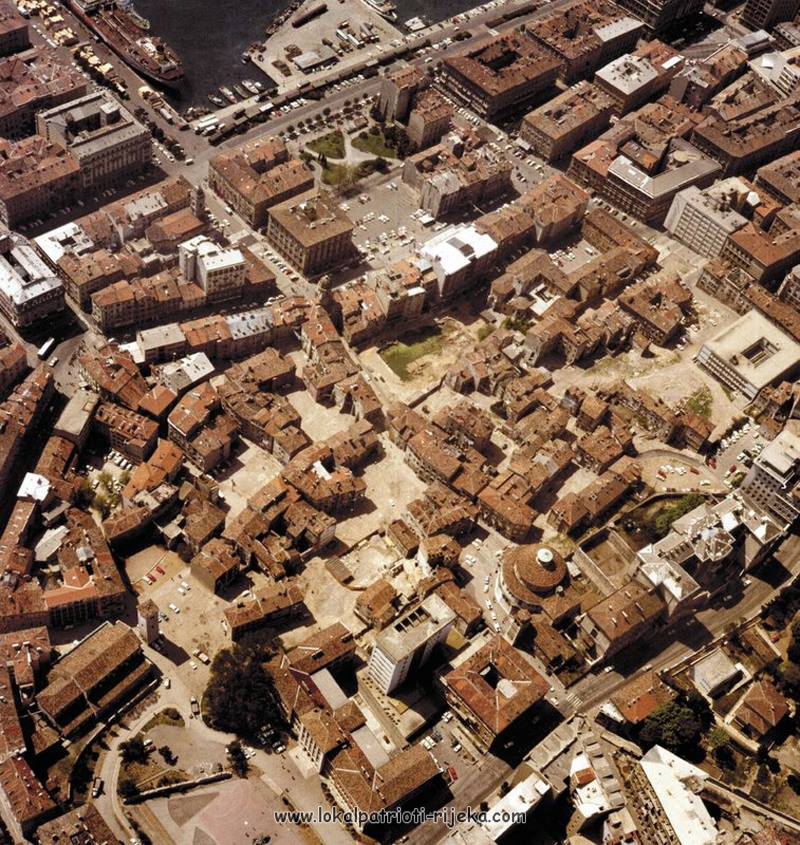 Ova fotografija Rijeke jasno pokazuje koliko se već grad očistio. Neboder od 6 katova MUP-a usred stare jezgre i crkve svetog Vida !! Godina slike je oko 1964., vidimo riječka banka je već sletila i srušila par kuća. Riječka banka (1965, Ostrogović).