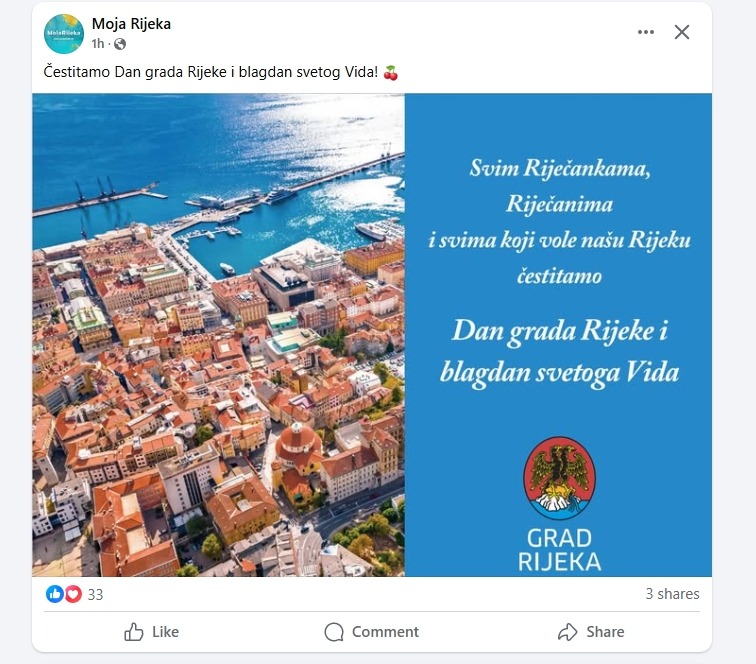 Malo smo promatrali kako su vodeći riječki mediji sudjelovali u čestitanju Dana Grada Rijeke na društvenim mrežama. Novi list kao vodeća lokalna novina ništa, Fiuman, Riportal , RD, Torpedo , Kvarnerski , Burin … ništa. Iako su znali čestitat, no evo ove godine možda nedjelja, vrućina i more su učinili svoje.