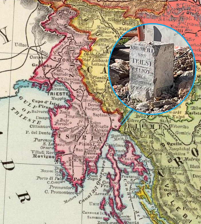 Nismo vidjeli još cijeli kamen ali koliko se da vidjet, jasno upućuje na to da je kamen stajao na granici prema Trstu.