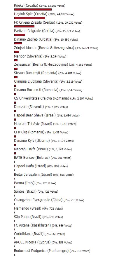 Ovo nismo očekivali. Gotovo preko noći promijenio se omjer snaga. Crvena Zvezda je nadmoćno vodila i onda Hajduk. Danas je Rijeka preuzela vodstvo s blizu 30.000 glasova podrške!