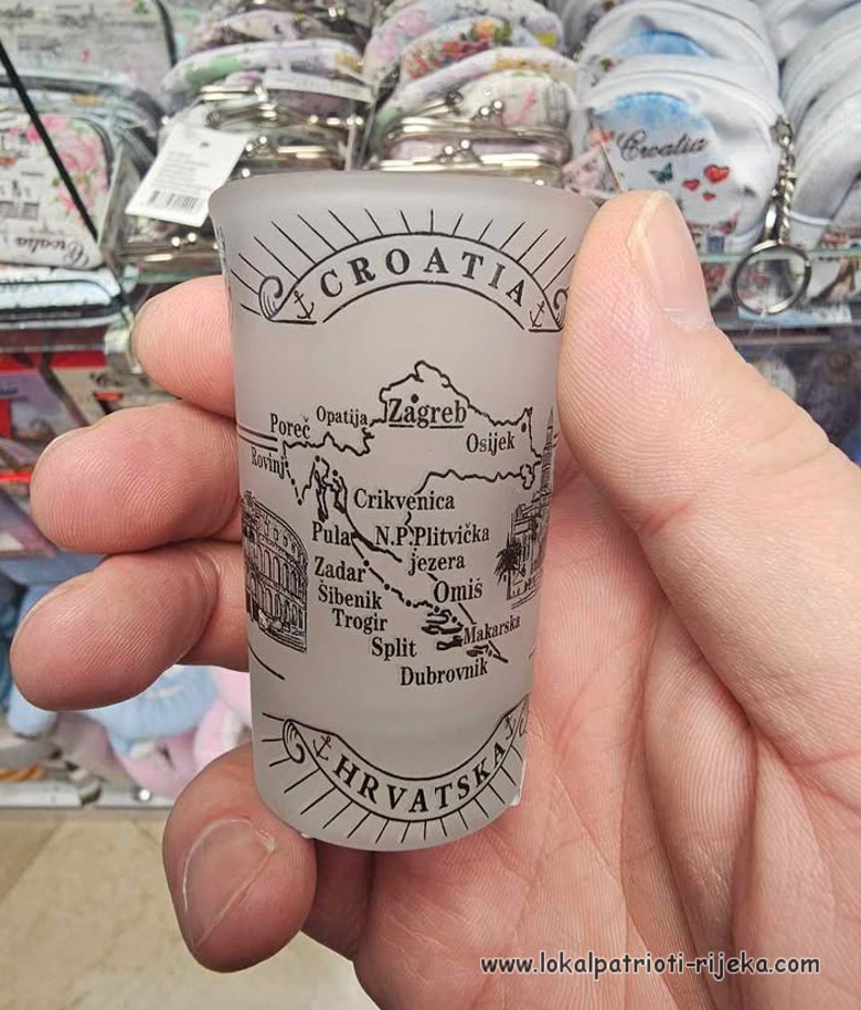 Riječ je o čaši, suveniru s kartom Hrvatske bez Rijeke. S komentarom da je to možda “dalmatinsko” maslo i nimalo mu se nije svidjela.