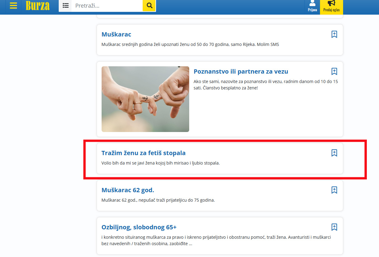 I danas ima neobičnih oglasa. Oglas u kojem se traži žena, kojoj bi se ljubile noge.