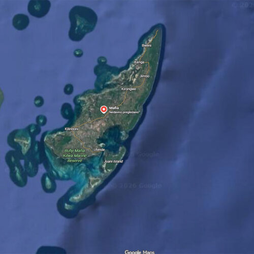 MAFIA OTOK- Glavni grad na Mafiji je Kilindoni na zapadnoj obali. Na jugu se nalaze osamljene plaže Ras Kisimani, odmah preko puta otoka Bwejuu i Utende. Na istočnoj obali nalazi se zaljev Chole, zaštićeno sidrište za dubokomorske aktivnosti i izvorna luka otoka Mafia. Zaljev je prepun otočića, pješčanih sprudova i plaža, a s istoka ga štite koraljni grebeni i otok Juani.