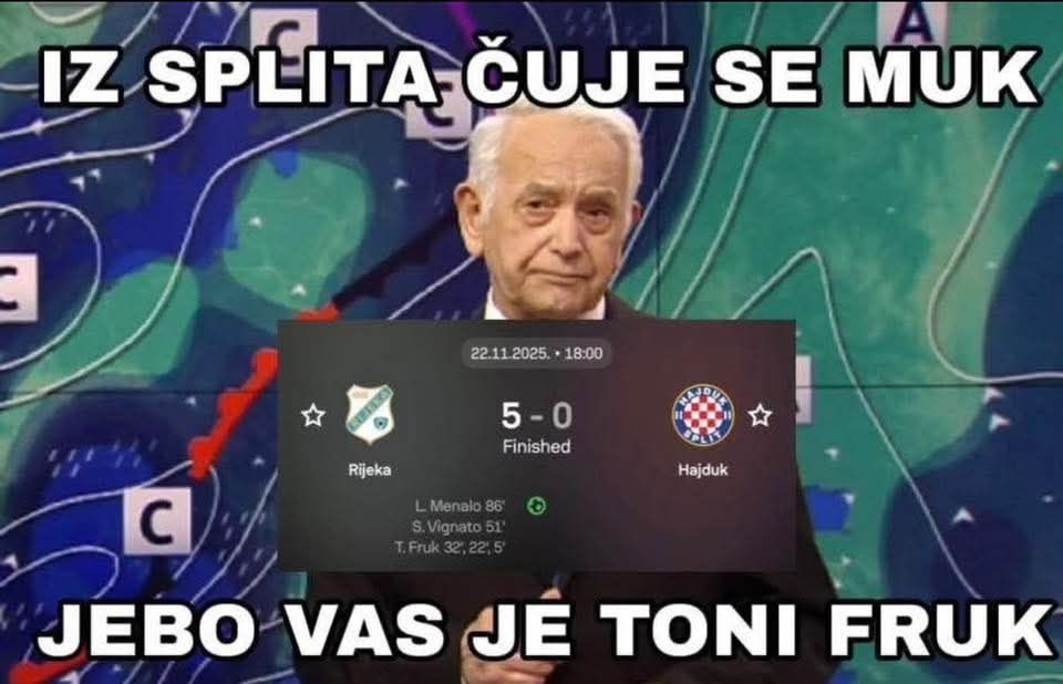 Najveća REKORDNA pobjeda Rijeke protiv Hajduka u povijesti je 5:0, i to upravo ova današnja utakmica 22. studenog 2025. godine, gospodnje.