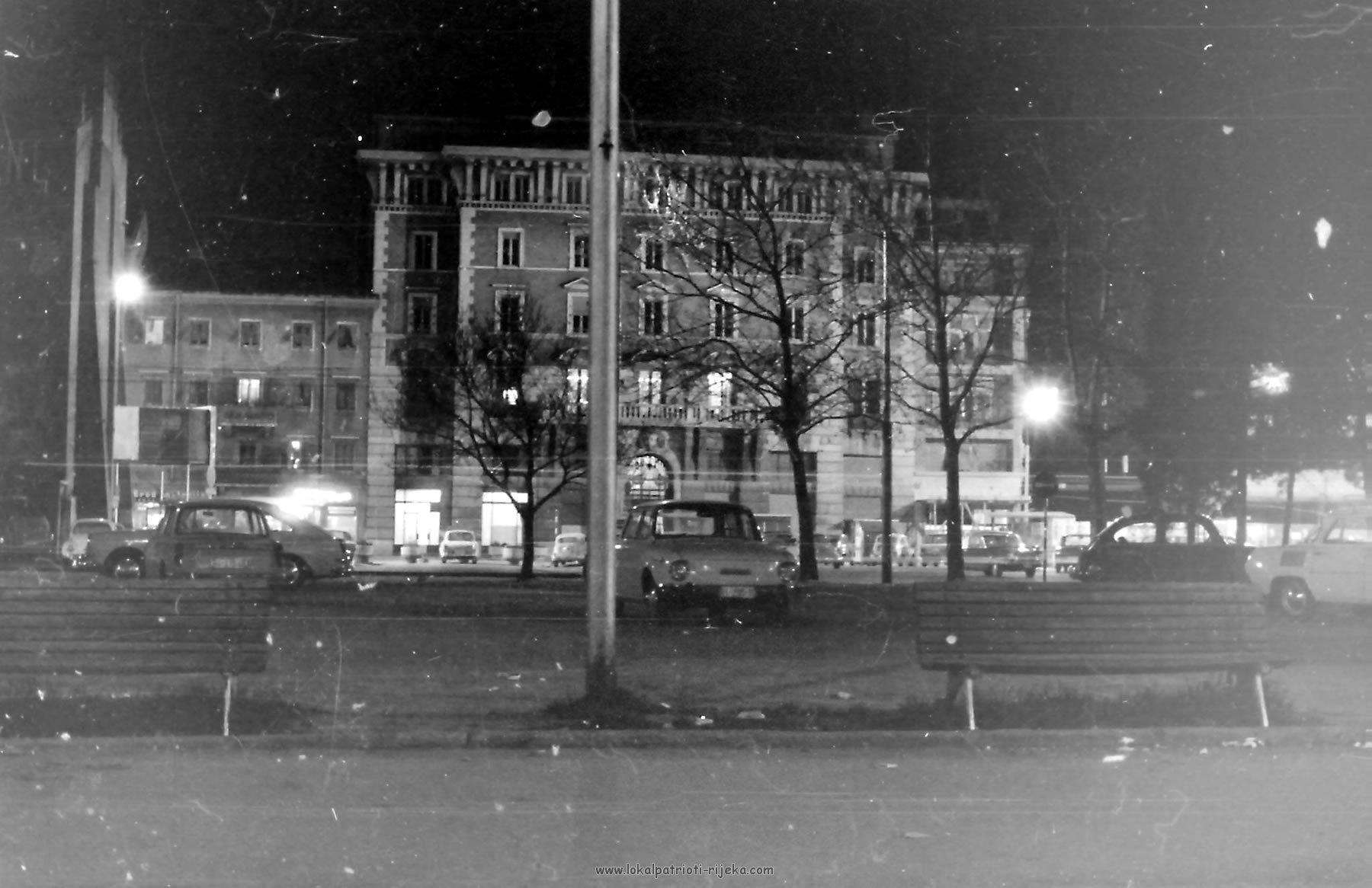 Ovako bi to danas izgledalo. Doduše ovu fotografiju smo uslikali davne 2010. godine. Robna kuća RI sagrađena je 1974. godine. Djelomično je na Rivi gdje se smjestila na dijelu bivšeg parka nastalog na prostoru, premošćuje Adamićevu ulicu i djelomično je sagrađena na Korzu.