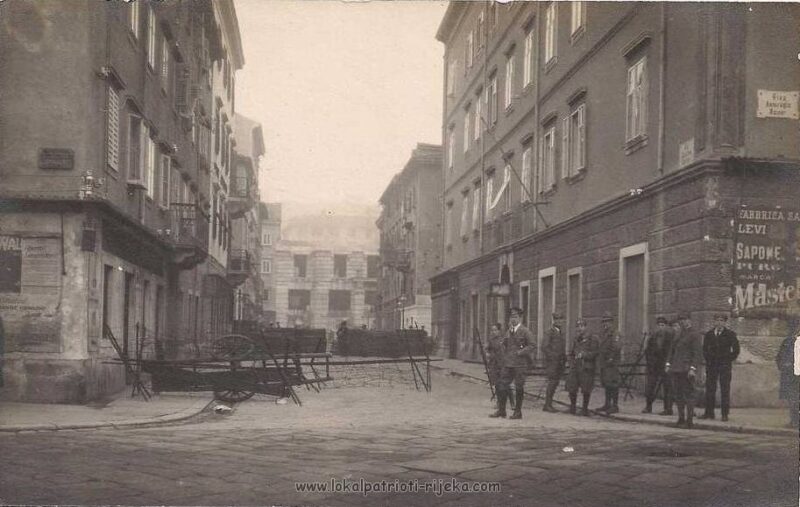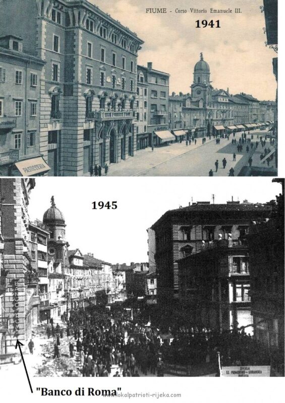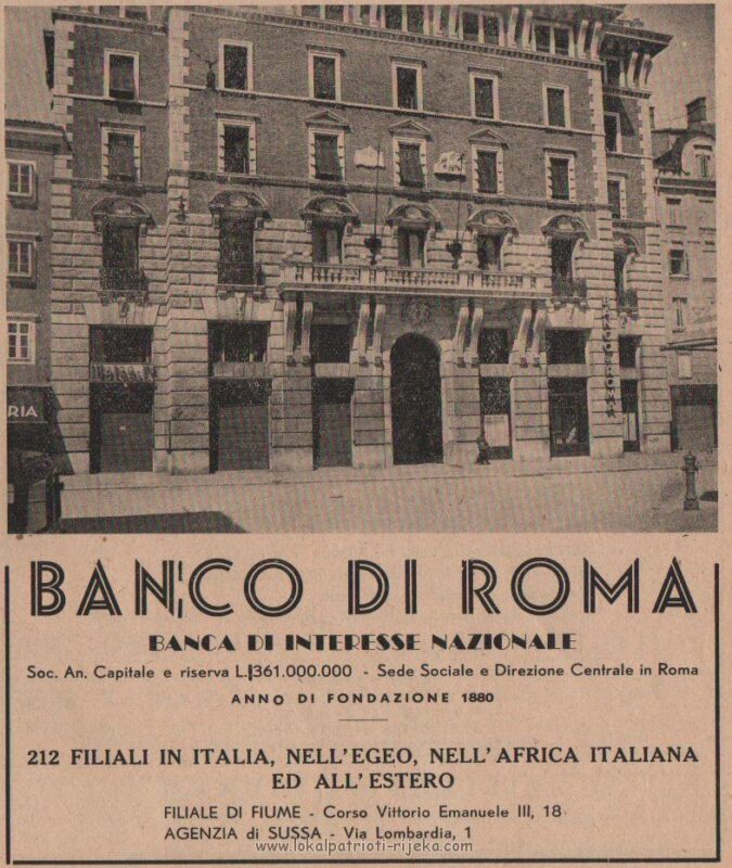 1914. Na Korzu srušene su dvije stare kuće da se dobije mjesto za zgradu Gradske štedionice ! Izvor: Kronološki podaci prema knjizi Kako čitati grad. Arhitektonsko rješenje unutrašnjosti rad je braće Messinger i Ernesta Fratriscevitsa iz Budimpešte, dok njezino pročelje potpisuje riječki inženjer Bruno Slokovich. No u vihoru Prvog svjetskog rata zapelo je sve, zlatno doba Rijeke je prekinuto a AU raskomadana i nestala trajno. U Rijeku ulaze Talijani i prisvajaju ju sebi ,no postaje slijepo crijevom odvojeno od svojeg zaleđa. Građevina će se dovršiti tek tamo negdje oko 1930. kad ju preuzima i dovršava Banka di Roma.