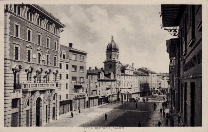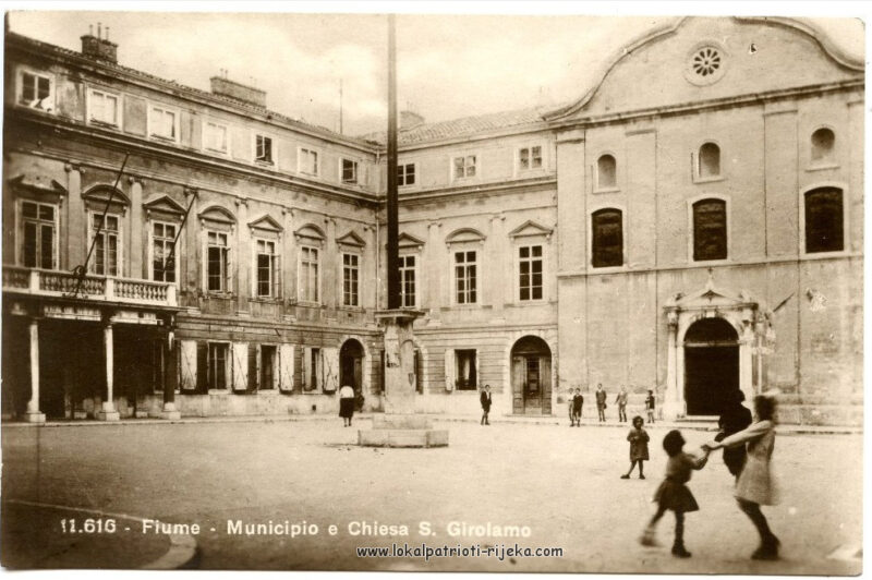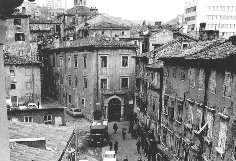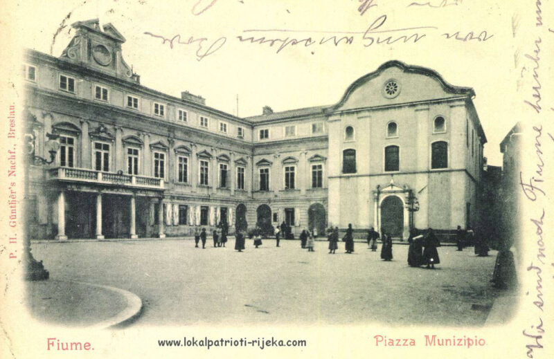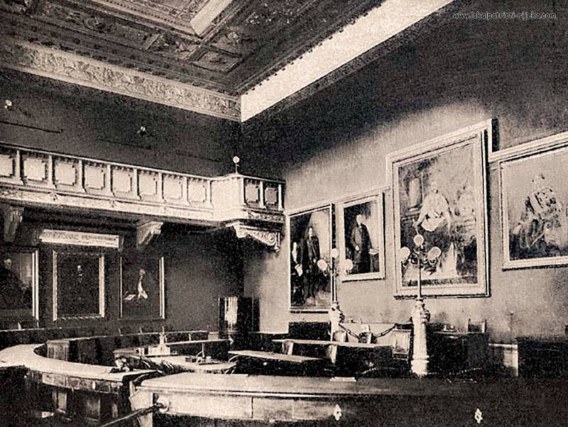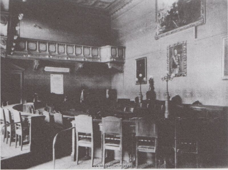 Gradska vijećnica u Municipiju na Trgu Riječke rezolucije nekoć. Danas je u njemu studio lokalne televizije Kanal RI. Bilo bi lijepo zaviriti u nju danas da vidimo što je ostalo od nje.