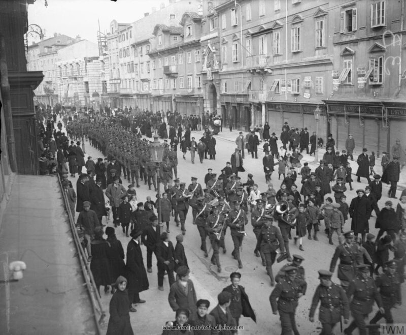 1918. Tadašnje vojne svjetske sile paradiraju gradom. Velika Britanija, vojska. Čiji je grad ?