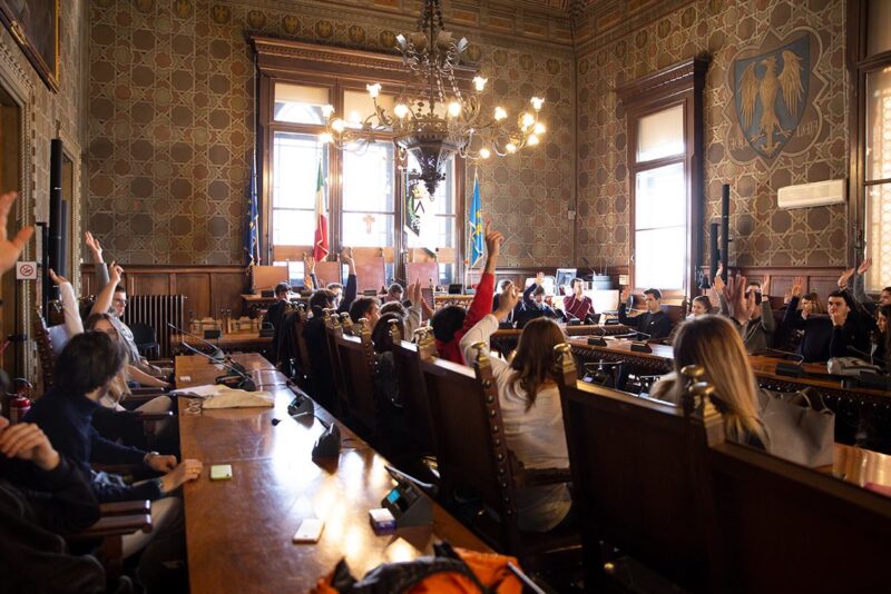 Sam Municipij od 1835. godine bio je u nekadašnjem samostanu augustinskog reda uz crkvu Svetog Jeronima. Cijela zgrada obnovljena je kao jedan od prvih zahvata gradonačelnika Giovannia de Ciotte koji je stupio na dužnost 3.studenog 1872. i na njoj ostao do 1896. godine.