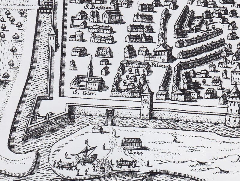 Loža se prema ovom crtežu nalazila na današnjem mjestu fontane, na Koblerovom trgu. Ona je služila za sudske odluke i trgovačke ugovore. Igor Emili gradi fontanu u spomen radničkim pokoljenjima. I cijeli ovaj prostor općenito doživljava devastaciju, gdje se implementiraju nove zgrade usred stare povijesne jezgre.