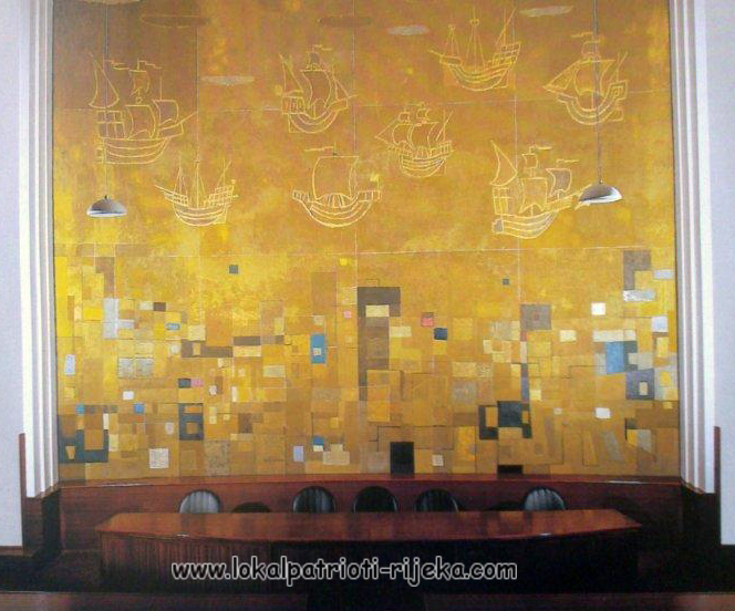Vladimir Udatny: Oslik zida Vijećnica Grada Rijeke, 1954. Rijeka i zlatne lađe.